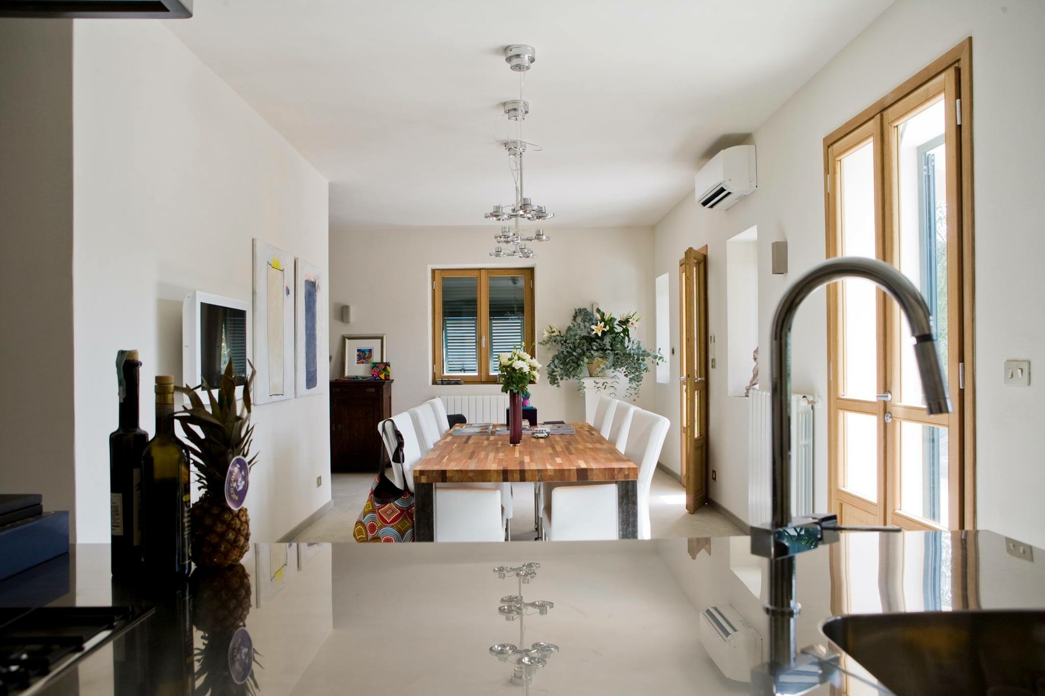 Villa Dolce Apricale is in 2008 gebouwd met veel oog voor detail en hoogwaardige materialen. Het is modern, en zeer smaak- en sfeervol ingericht. Een geslaagde mix van Italiaans design, moderne kunst en etnische invloeden. Er is wifi aanwezig, en naast dvd’s kunt u op de flatscreen tv in de lounge onder andere Nederlandse tv-kanalen kijken. De slaapkamer beneden heeft twee mooie bedbanken van 1.40 x 2.00 meter. De hele villa is voorzien van airconditioning en centrale verwarming.